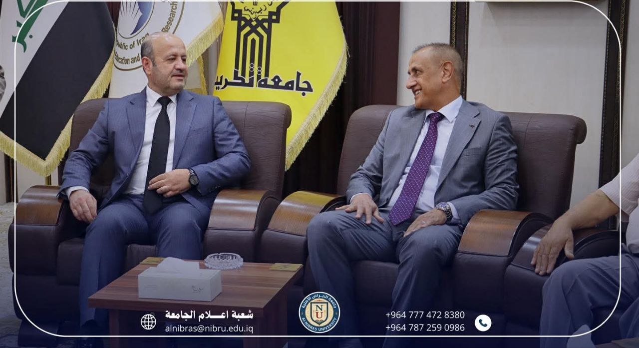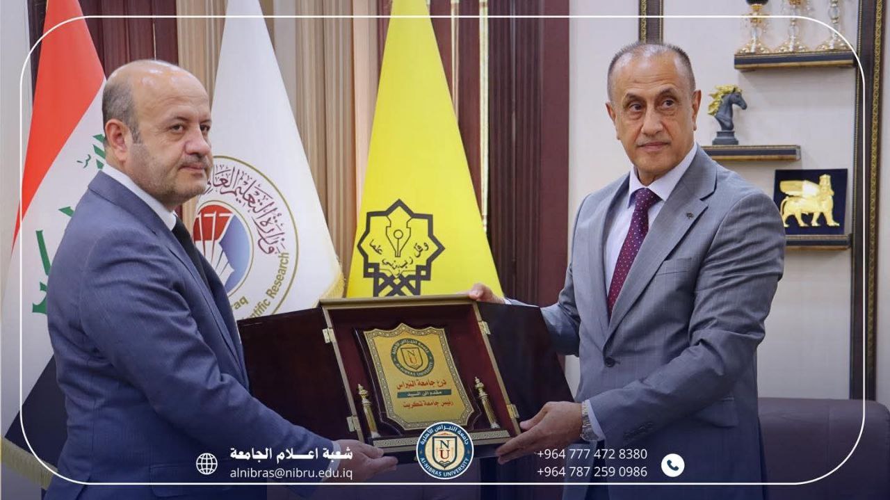 رئيس جامعة النبراس الاستاذ الدكتور فرج محل محمد يجري زيارة رسمية إلى رئاسة جامعة تكريت، حيث كان في استقباله والوفد المرافق له السيد رئيس جامعة تكريت، الاستاذ الدكتور وعد محمود رؤوف.