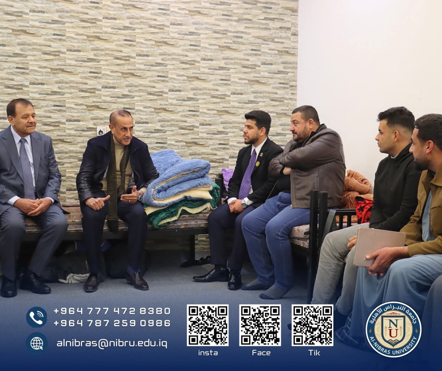 ضمن متابعته المستمرة لشؤون الطلبة، أجرى السيد رئيس الجامعة الاستاذ الدكتور فرج محل محمد والسيد المساعد الاداري الاستاذ الدكتور حسن محمد صالح يجريان زيارة ميدانية ليلية إلى الأقسام الداخلية لطلاب وطالبات جامعة النبراس للاطلاع على أوضاعهم والوقوف على احتياجاتهم بشكل مباشر. وتلبية متطلباتهم