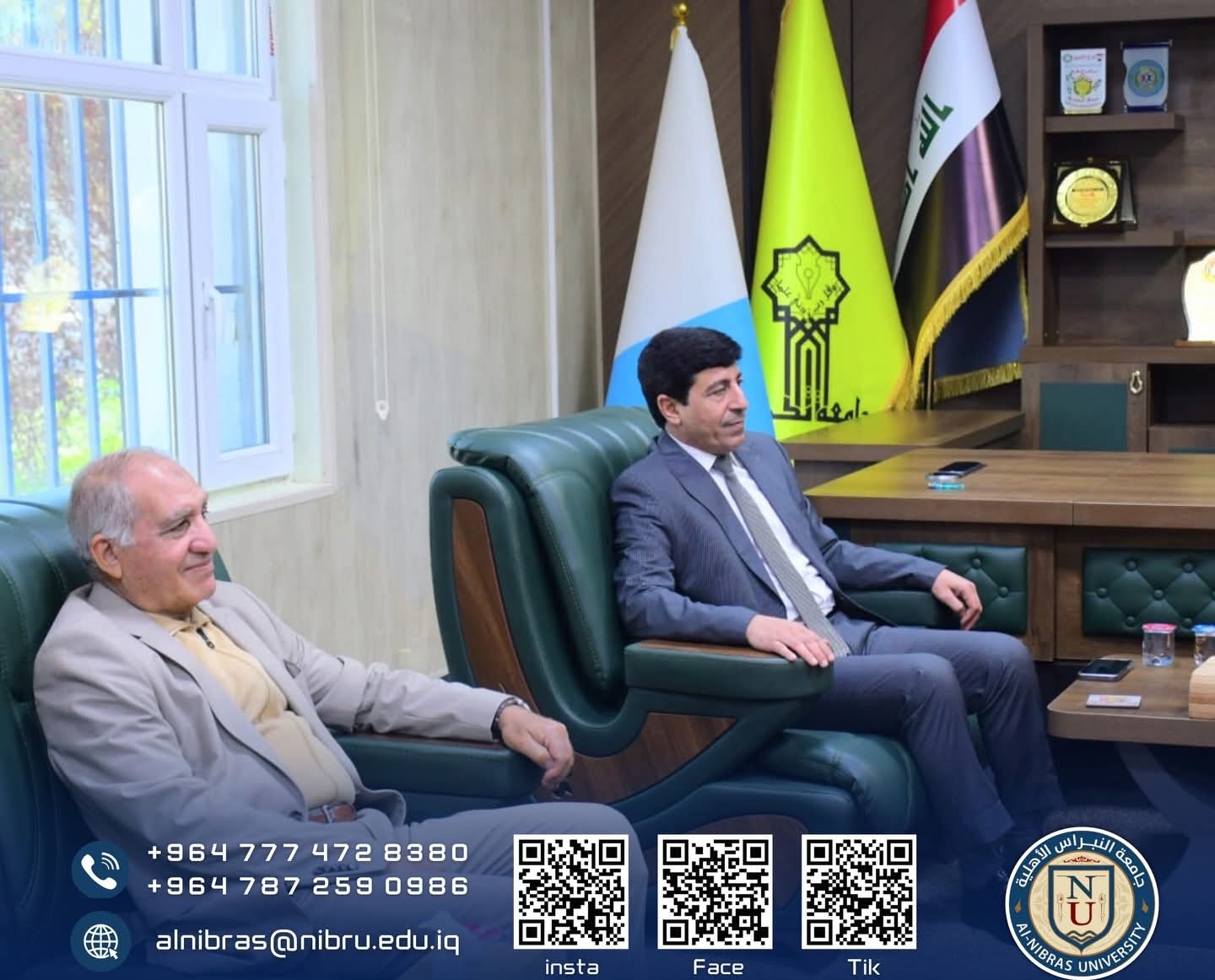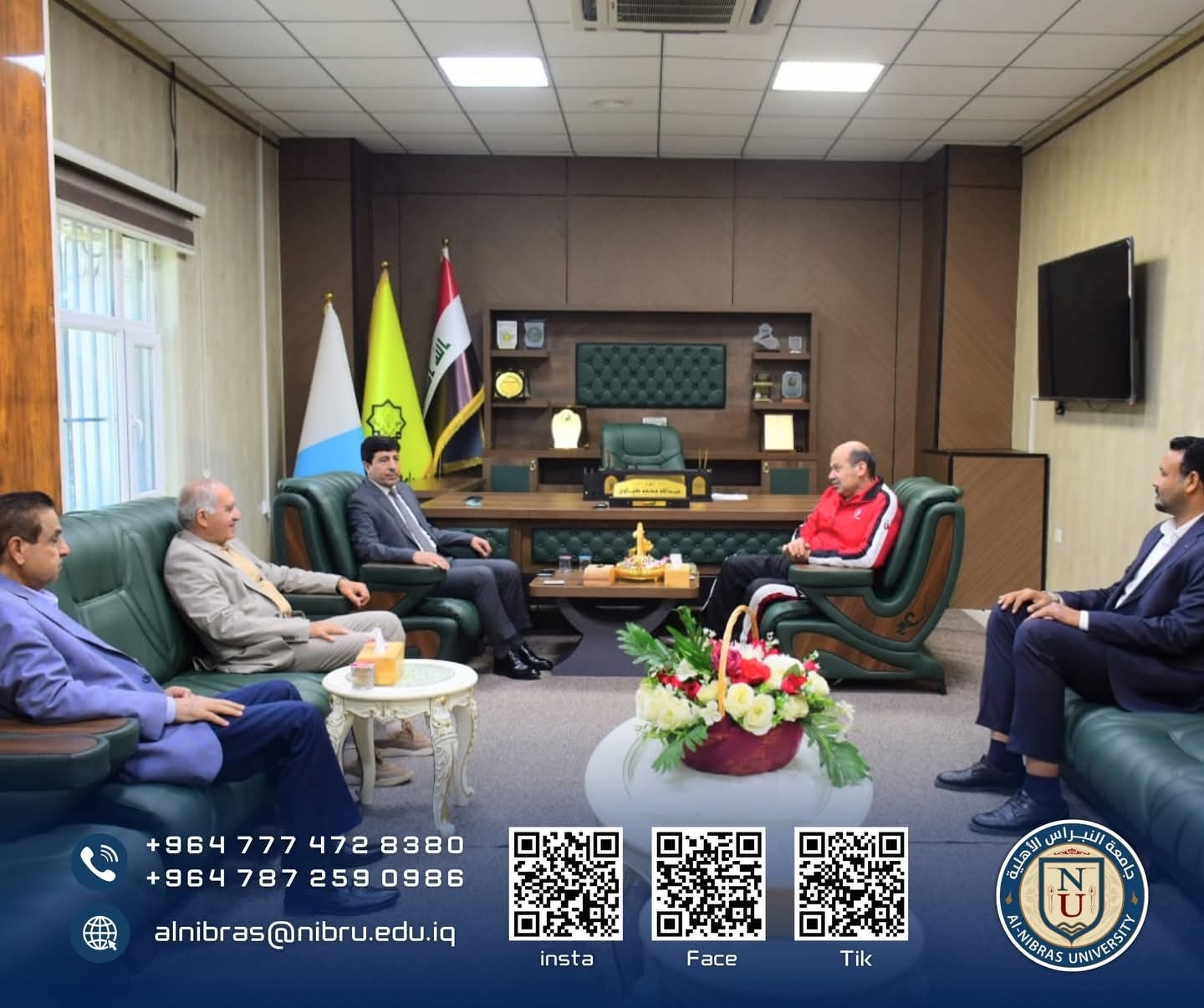 قام السيد عميد كلية التربية البدنية وعلوم الرياضة بجامعة النبراس الاستاذ الدكتور عبدالودود احمد خطاب والوفد المرافق له بزيارة كلية التربية البدنية وعلوم الرياضة بجامعة تكريت، للاتفاق على التعاون الثنائي بين الطرفين، وتضمن الاتفاق على التعاون العلمي والبحثي في اختصاص الرياضة والنشاط البدني بكلتا الكليتين.